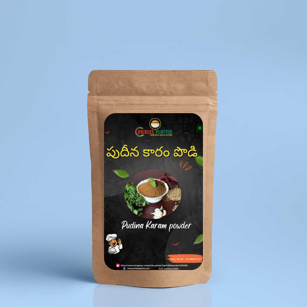 Discover the refreshing taste of our Pudina Karam Podi, a unique blend of dried mint leaves, red chilies, and flavorful spices. This aromatic South Indian spice powder brings a minty twist to your meals, perfect for mixing with rice, sprinkling on dosas, or pairing with ghee. Made the traditional way with love and culture, our Pudina Karam Podi adds a fresh, spicy kick to any dish!